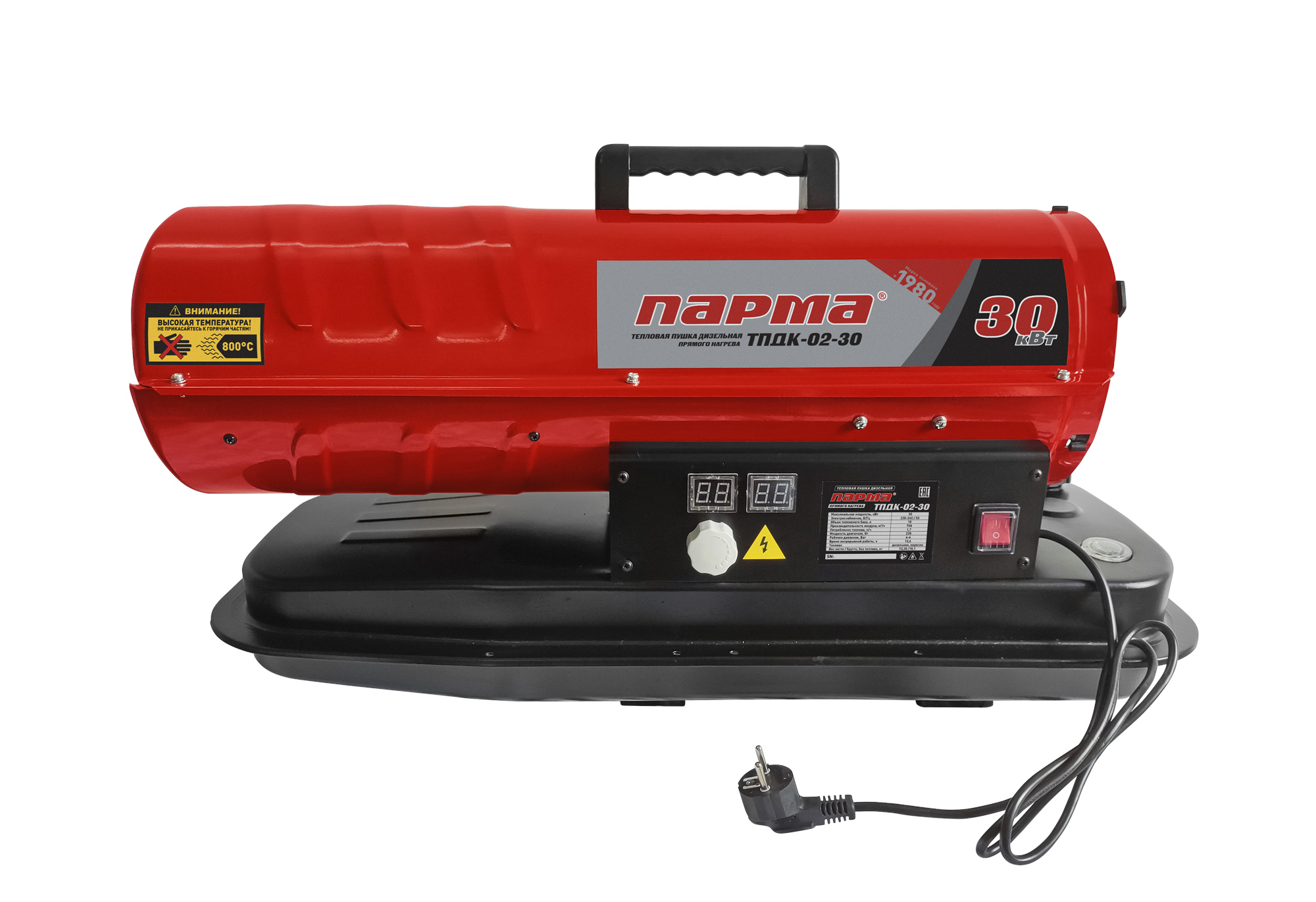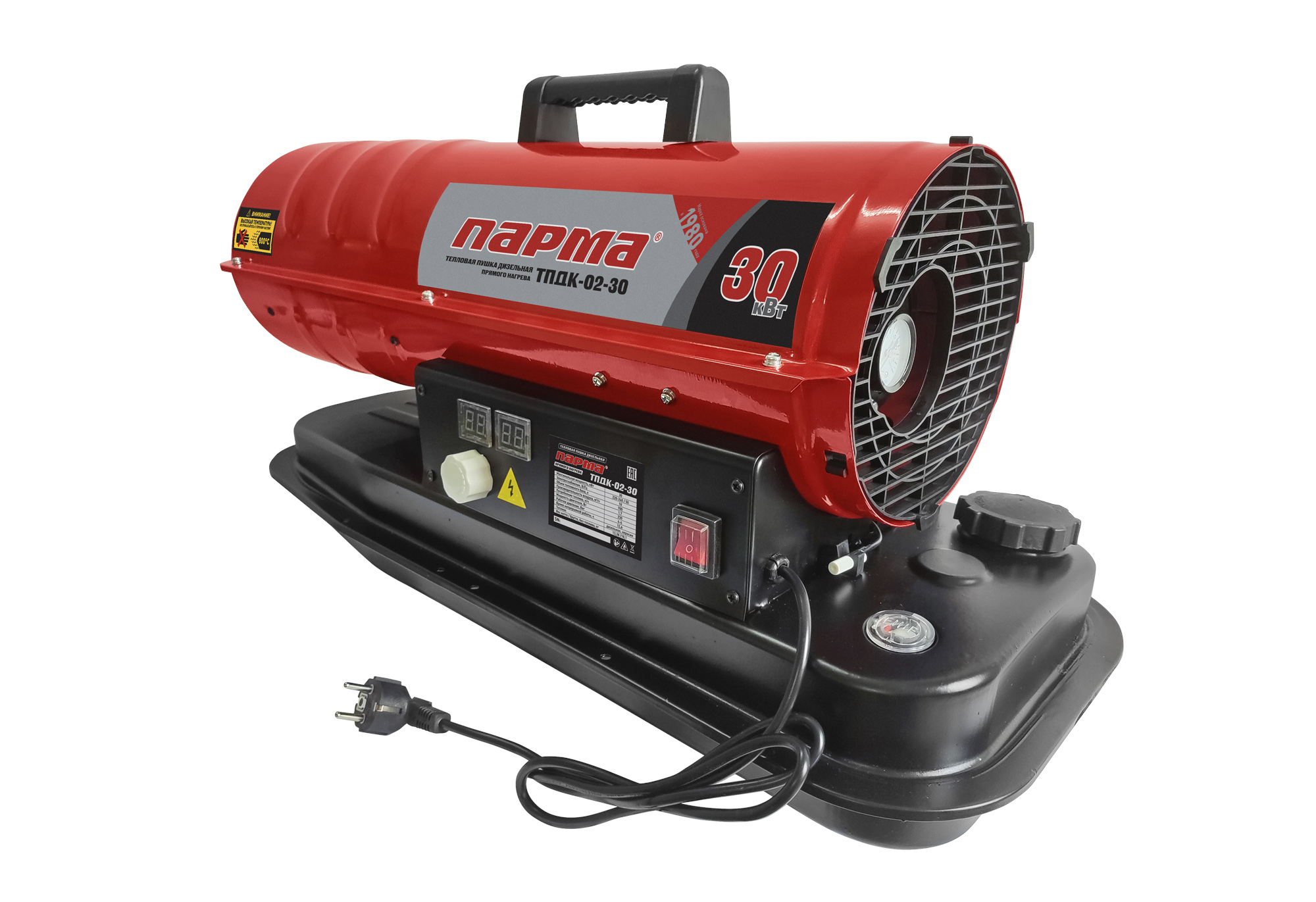 Дизельная тепловая пушка ПАРМА ТПДК-02-30 – это переносная тепловая пушка прямого горения, предназначенная для безопасного, надежного и эффективного обогрева помещений в условиях умеренного климата категории размещения 3.1 (УХЛ 3.1) по ГОСТ 15150-69.